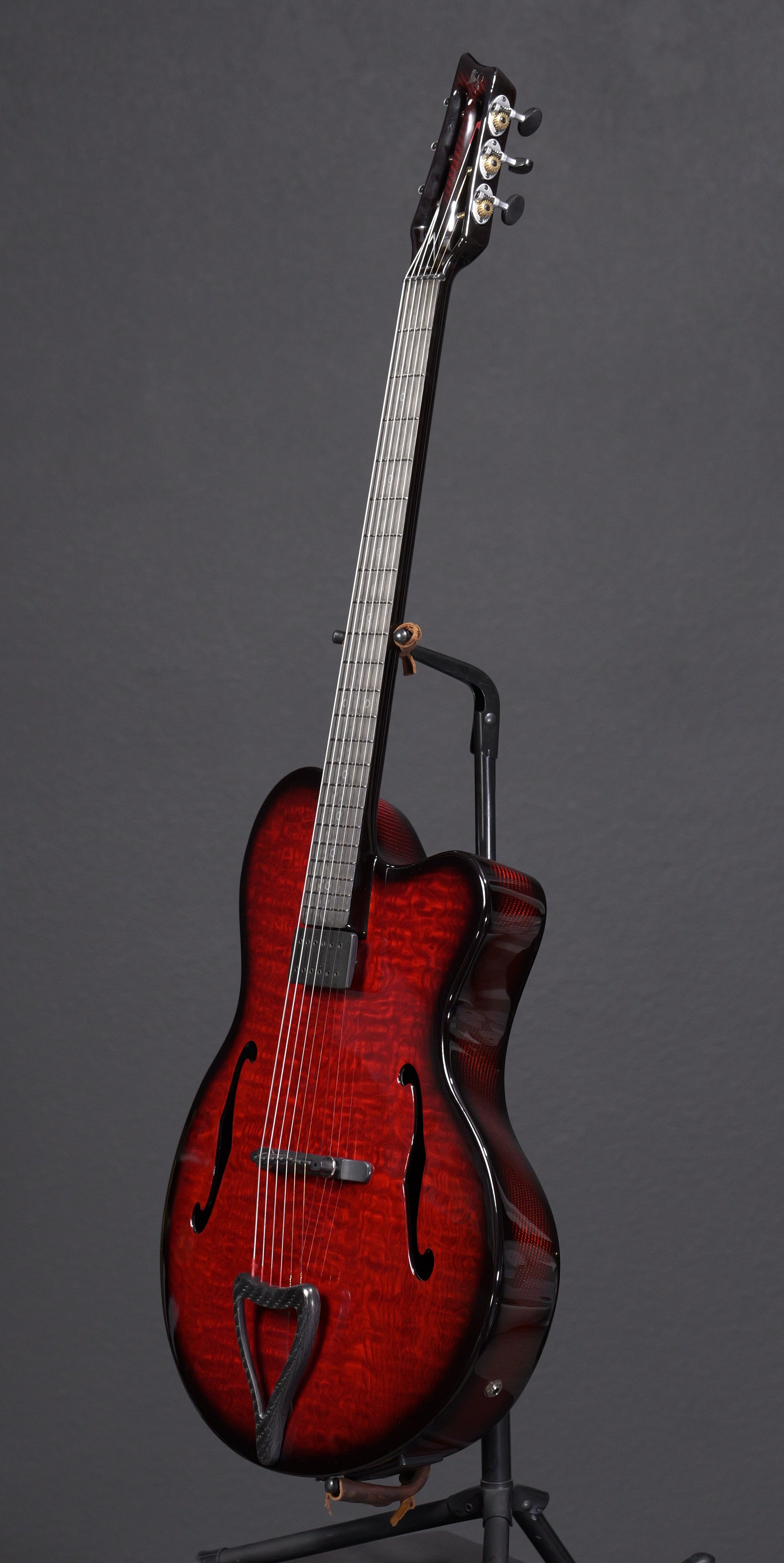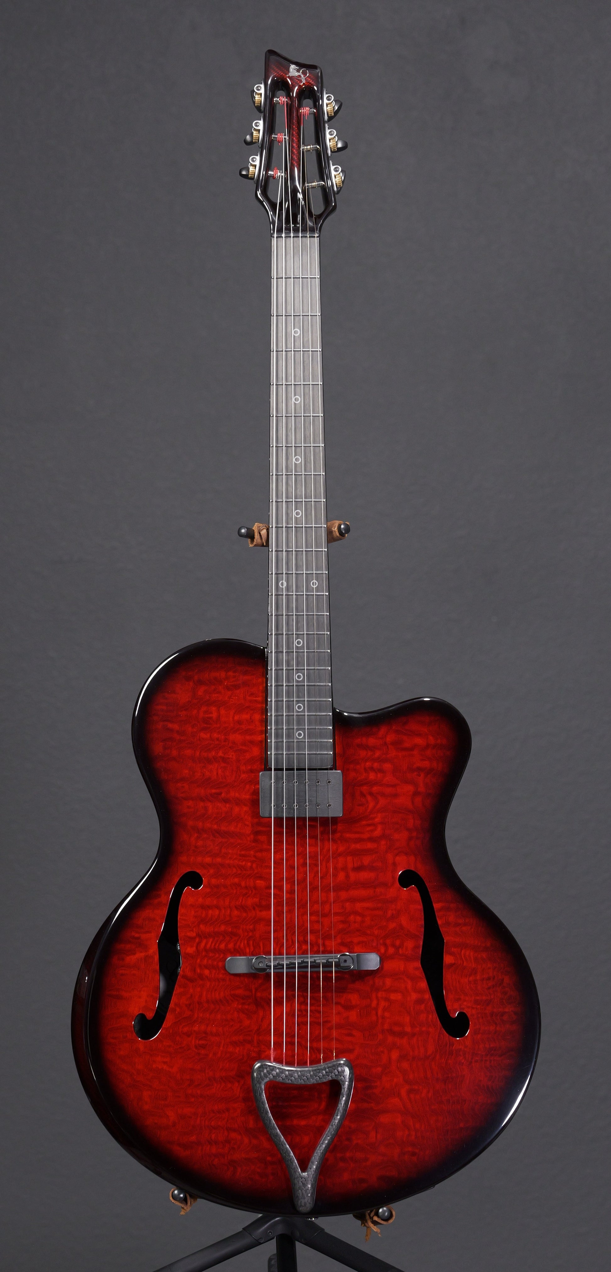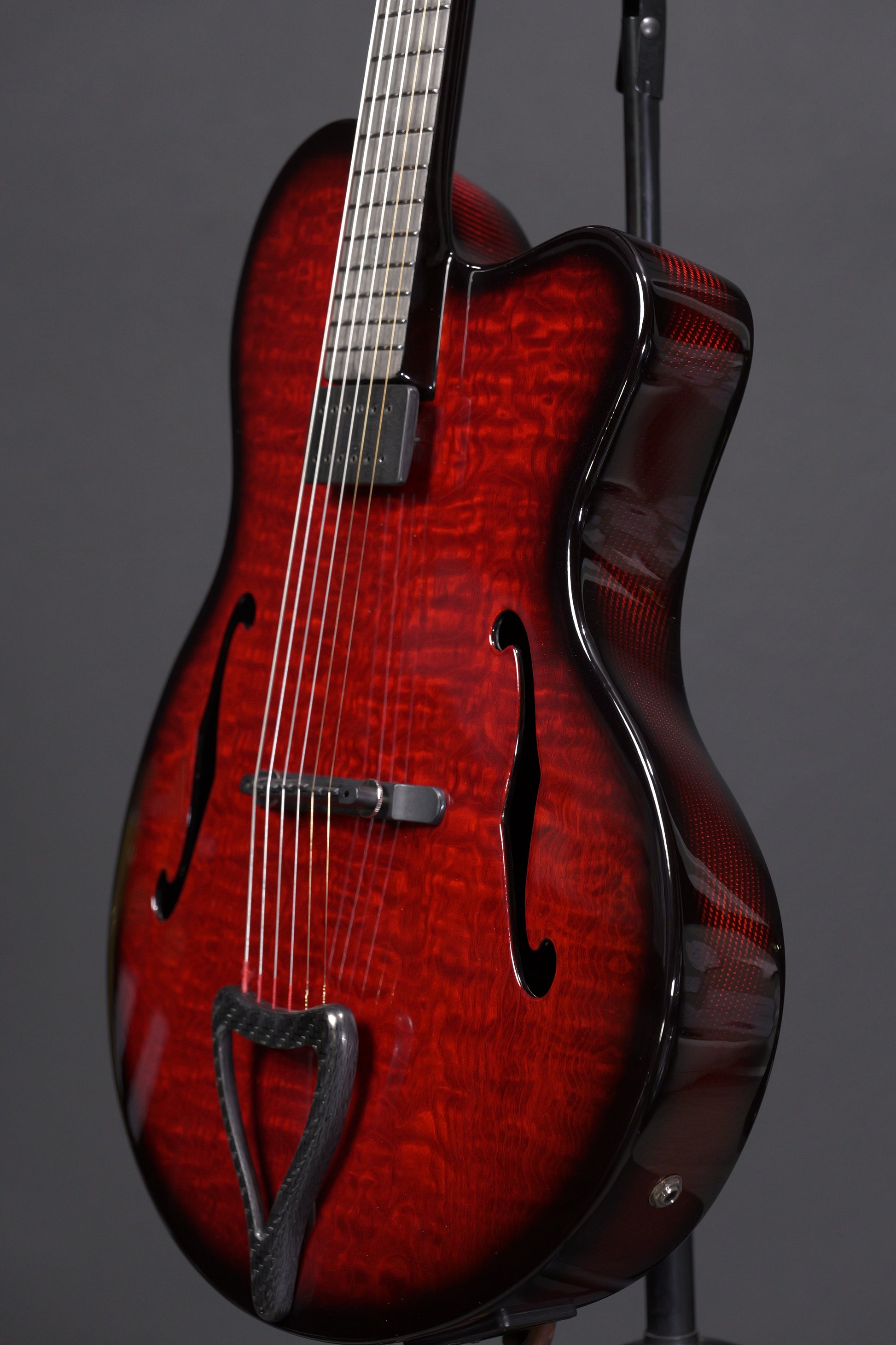Used 2022 Emerald Kestrel. Such a unique and fantastic guitar to play. Comfortable, lightweight, and excellent playability. Emerald Guitars has taken it to the next level with their guitar designs. Let me know if you have any questions.