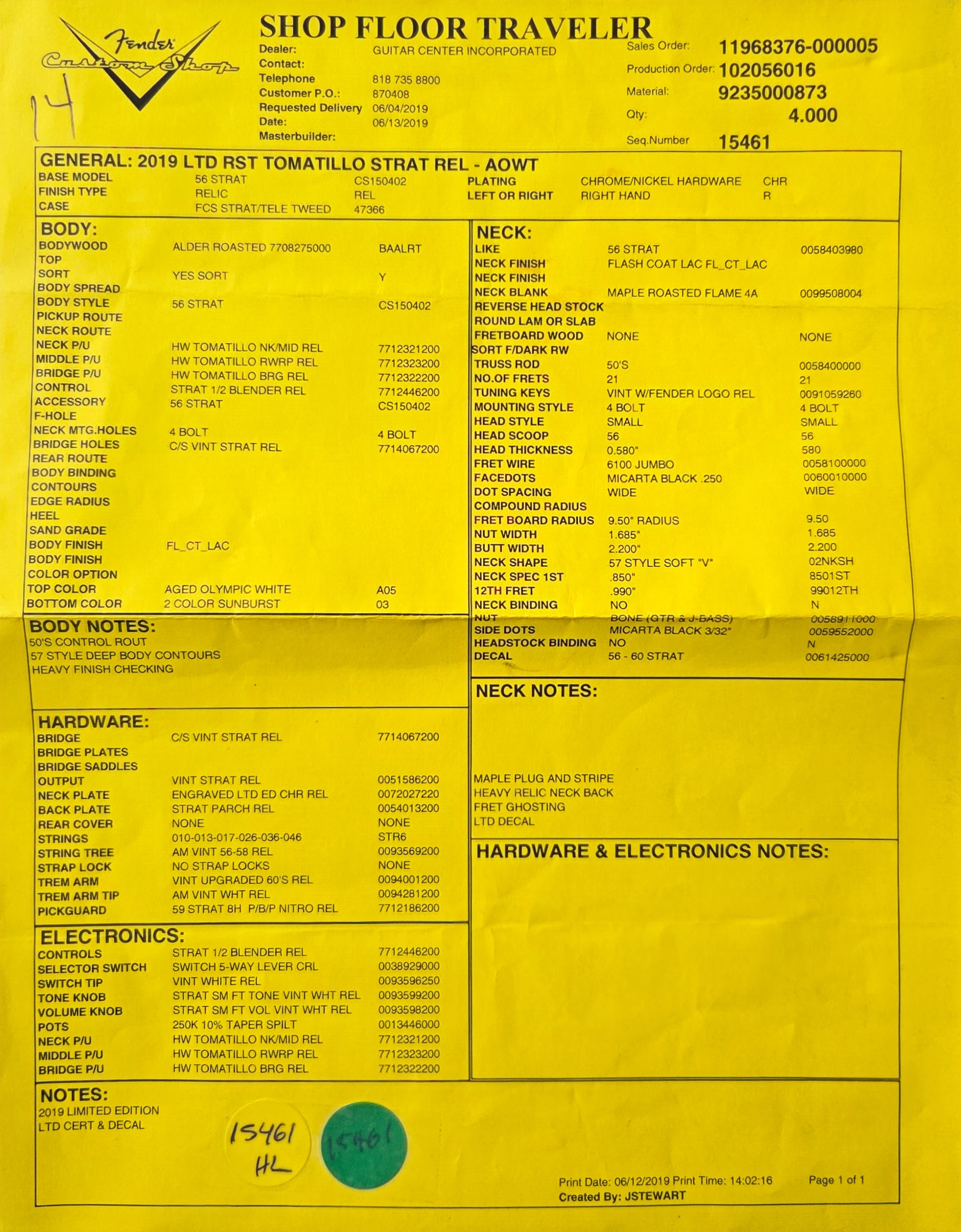 Fender LTD Roasted Tomatillo Stat Relic 2019